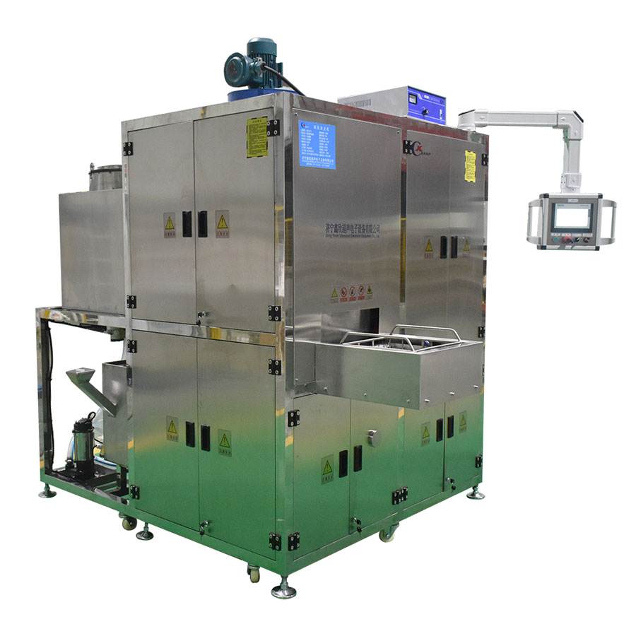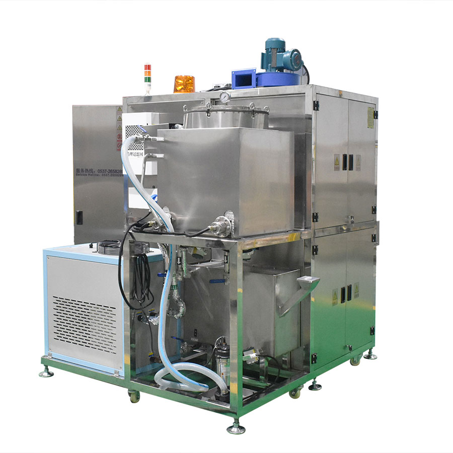 該設備為高潔凈度清洗機,采用碳氫超聲波清洗工藝。該設備由超聲波清洗槽、蒸汽浴洗槽、清洗網(wǎng)框、清洗槽冷凝區(qū)、分水器、工業(yè)冷水機、溶劑回收機、管路系統(tǒng)、智能控制系統(tǒng)等組成